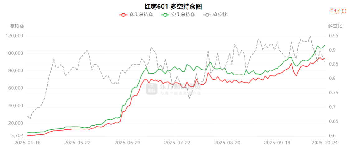融证通 红枣龙虎榜 | 主力合约增仓下行 多空双方均呈进场态势